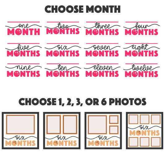 Baby Monthly Milestone (Month 1 - 6) Picture Frame Layered 8x8 Shadow Box