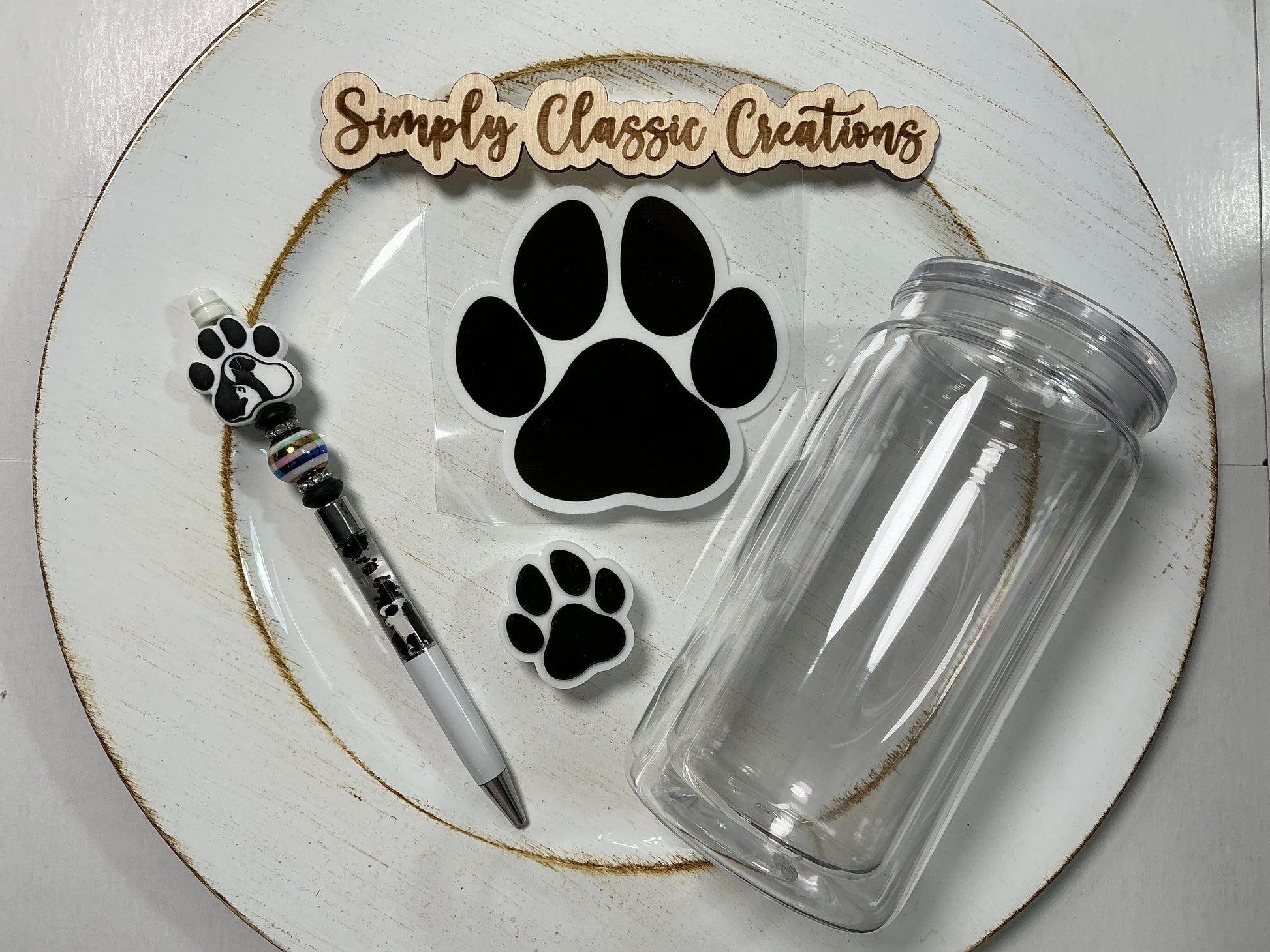 16 oz Acrylic Tumblers with Pen & Keychain Set - Paw Print